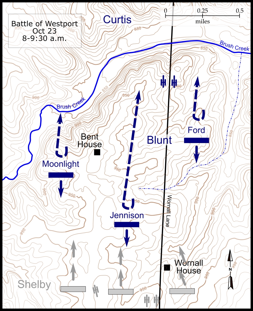 Back: Maps Showing Position of Opposing Forces on the Battlefield Next: Battle of Westport Overview