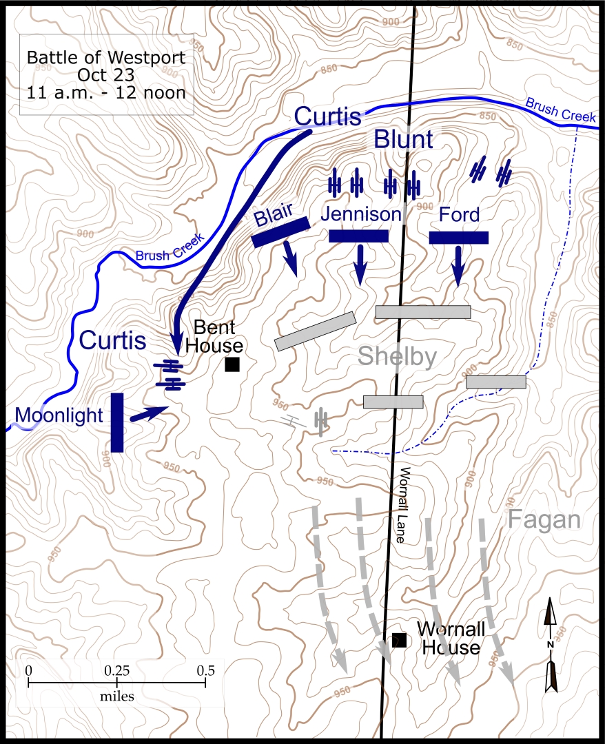 Battle near Brush Creek, October 23, 11:00 a.m. - 12 noon